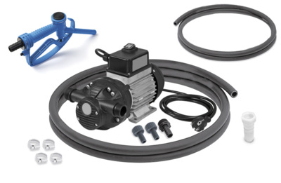 Includes: 12V Electric pump 60212, Suction hose with quick coupler, 4 m outlet hose, Manual nozzle