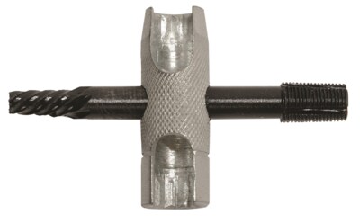 All-In-One tool to extract broken fittings, re-thread holes and install new straight and angle-type fittings. With 1/8" NPTF thread.