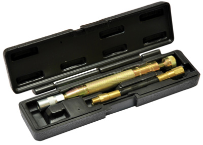 Simply fill the tool with a light oil and with a few taps the joint will open. The grease fitting rejuvenator will allow a clogged grease fitting and /or joint to take on grease by injecting a light viscosity oil into the grease joint via the grease fitting, thus breaking up and removing any dirt, rust or debris. The purpose of this tool is to free up the joint and the fitting enabling them to be greased. Once the tool is installed onto the grease fitting, only a tapping of the piston is required to open a joint.