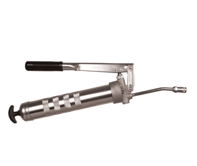 Filler nipple included. Equipped with ergonomic handle. For bulk grease or 400 gram cartridge. Capacity: 1.1 gr (high pressure) or 1.8 gr (high volume) per stroke.