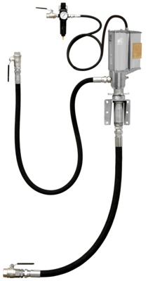 For dispensing lubricating oils and similar products up to SAE 140 in piped systems. Recommended if more than 3 outlets are in use simultaneously. Quiet and double acting operation and easy to fit to drum or tank. Includes: wall bracket, 1/4” filter regulator, 1,5m air line hose, 2 pcs hoses for oil, 3 pcs ball valves