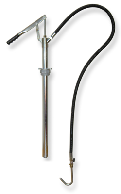 Hand operated pump for gear oil. 2” drum adaptor, 1,5m outlet hose with ball valve and 135° spout included. Do not use with flammable or corrosive fluids.