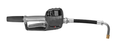 Digital meter with automatic function, the volume to be dispensed can be selected and the meter will shut off automatically. Microprocessor controlled, ergonomically designed with swivel, inlet filter and battery. The trigger can be locked in the open position and then closed with a slight tap on the locking button. Features:• Pre-set • Up to 10 pre-programmed volumes • Transaction memory 5 last tapping • Zero trip meter • Non-resettable total counter • Battery indicator • Measuring units Liter, US Gallons, Quarts and Pints