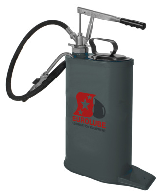 Equipped with hand operated pump and 1.5 m outlet hose c.w. ball valve. Do not use with flammable or corrosive fluids.