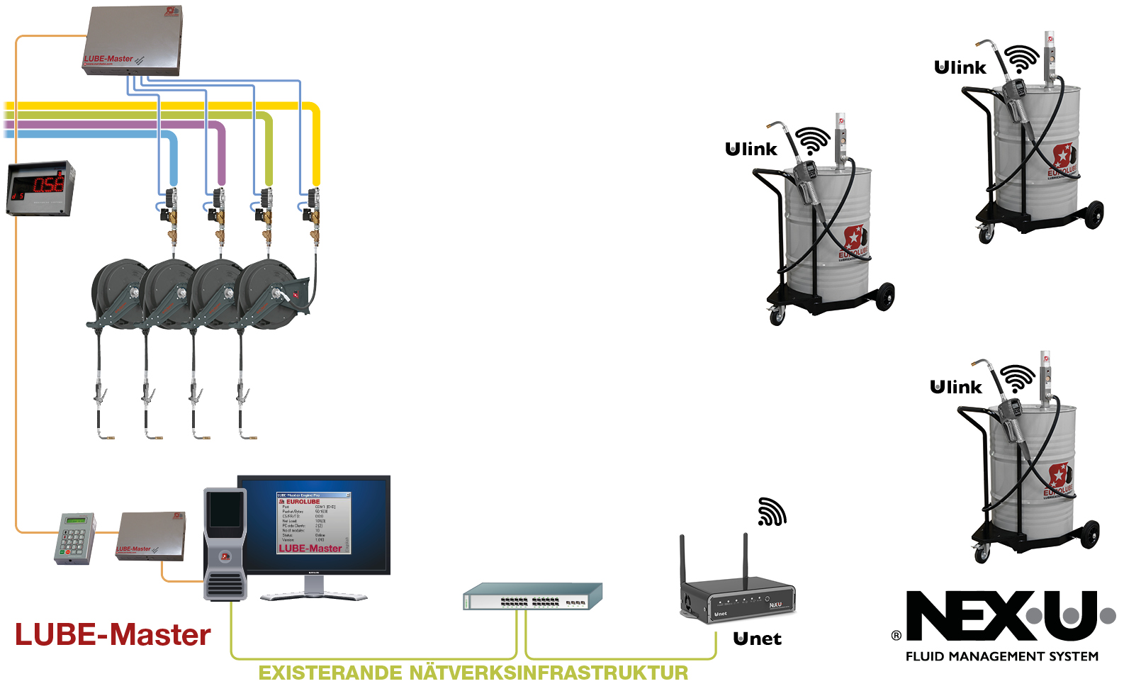 Tack vare det nya NEX·U·®-systemet kan befintliga LUBE-Master-installationer byggas ut med mobila enheter, vilket ger större frihet för mekanikerna att enklare fylla på smörjmedel i flera olika situationer, samtidigt som kontrollen över vätskeförbrukningen och att rätt volym faktureras till kunden bibehålls.