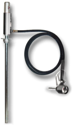 Komplett tryckluftsdriven pump för påfyllning av smörjoljor eller liknande upp till SAE 90. Tystgående och dubbelverkande, enkel att ansluta till fat, 2” fatadapter ingår.